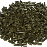 Livestock feed pellet production line makes 2-8 mm diameter animal feed pellets. Such as 2-4mm diameter chick feed pellets and pig feed pellets.2-5mm rabbit feed pellets, 4-8mm cattle or sheep feed pellets. The last pellet length can be adjusted.