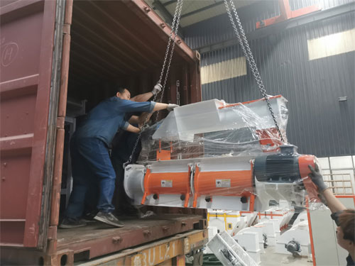 poultry feed pellet making plant packing and shipping to Europe, feed plant include feed crusher, feed mixer, feed pellet and cooler etc. this feed making plant capacity is 1.5-2.5t/h