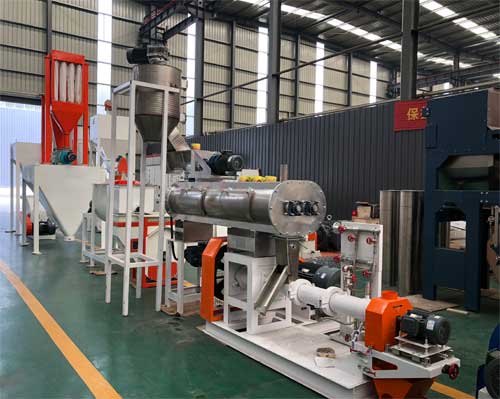 floating fish feed production line, this type is our DSP90B wet type fish feed production line, capacity is 500-600kg/h.